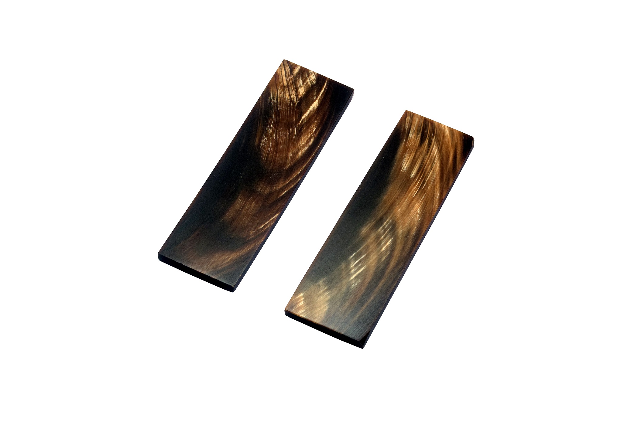 We are manufacturing and exporting all kinds of knife handles scales. This is water buffalo horn slabs, or buffalo horn knife scales for making knife handles. Water buffalo horn are used for making knife handles, optical frames, for hidden tang knives, gun grips, for inlaid art. Buffalo Horn White Streaks Scales