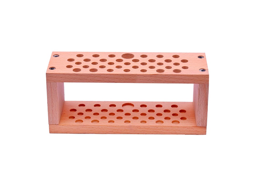 It features a lower base level with holes matched to the top to stabilize each tool and keep upright.