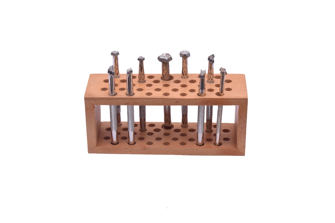 INTERCHANGEABLE PORTABLE TOOL STAND FOR LEATHER STAMPS AND A KNIFE,
